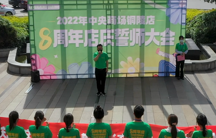 4月26日,艳阳一扫连日的阴雨,铜陵店全体员工及商户代表在外广场参加了铜陵店8周年店庆誓师大会。8年时光,我们一起经历激情燃烧的岁月,见证砥砺奋进的征程,我们披荆斩棘、破浪逐舟,在铜陵市中心不断蝶变升级,和顾客一起分享我们时尚、欢乐、温馨、潮流的生活态度。8周年店庆,这次必须不同凡响,YAO你来玩!