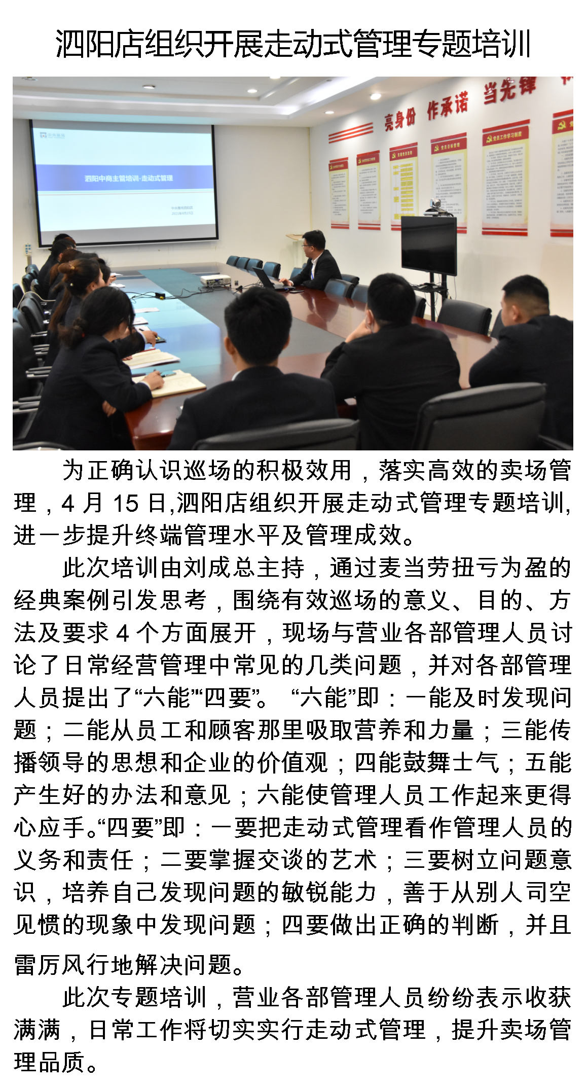 中央商场泗阳店组织开展走动式管理专题培训