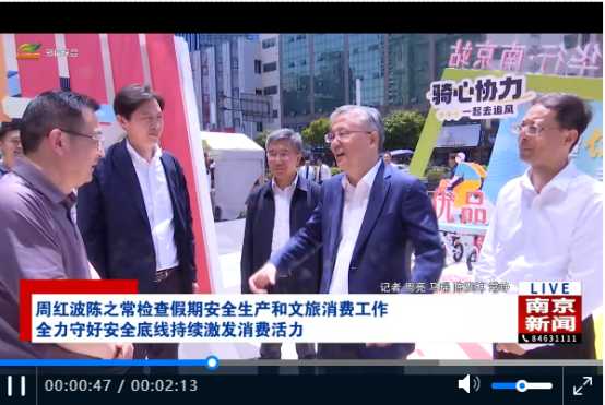 2025年5月1日,江苏省委常委、南京市委书记周红波率市商务局局长刘永辉、秦淮区区委书记王生等领导莅临中央商场新街口店,专题调研"外贸优品中华行南京站"展销活动。中心店总经理秦文泉全程陪同调研。