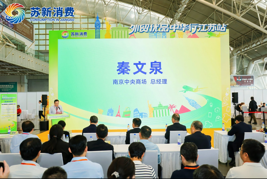 4月19日上午“外贸优品中华行江苏站”活动在南京国际展览中心举办,该活动旨在进一步发挥国内超大规模市场优势,增加高质量外贸商品国内市场供给,帮助外贸企业拓展发展空间。中央商场特邀参加活动,im电竞集团总裁助理兼中心店总经理秦文泉作为唯一的江苏百货零售企业代表上台发言,并在活动现场接受了江苏电视台、南京日报等媒体的采访。